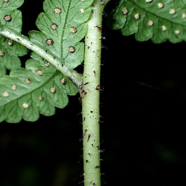 オオヒメワラビの鱗片はうすい茶色っぽい。