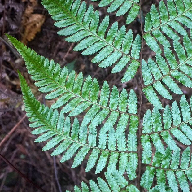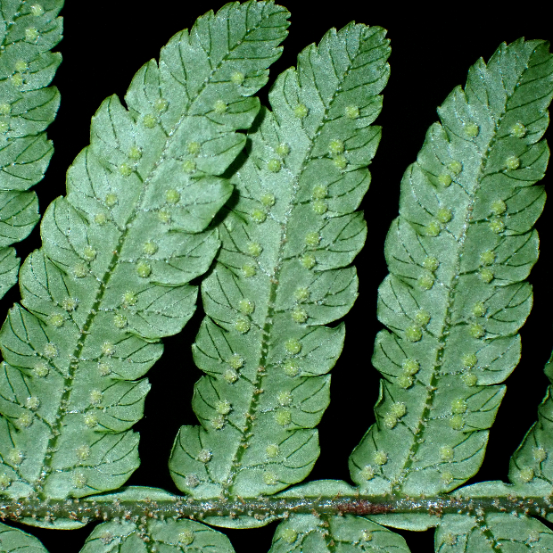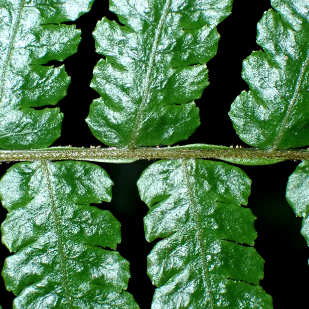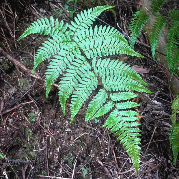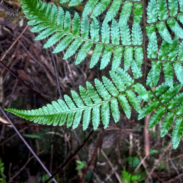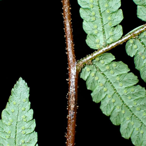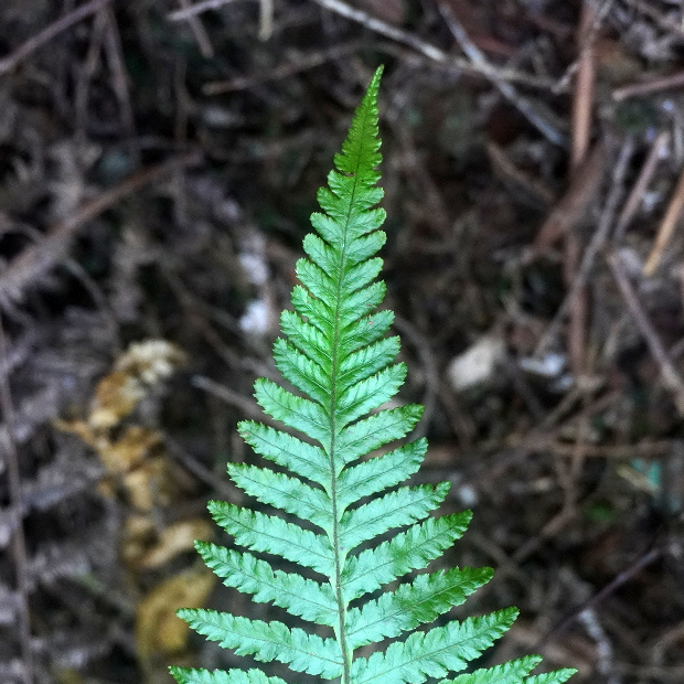 暖かい地域の湿った林縁に生えるヘゴ科のシダ。 葉は三角形状でわずかに紫色っぽさがあり、 軸部分は茶色っぽいです。 葉裏の丸い胞子のう群に包膜はなく、 葉柄基部には全体が明るい茶色の鱗片が多くつきます。 マルハチは小笠原諸島にのみ生える近縁種で、 それよりも草っぽいことからこの名があります。