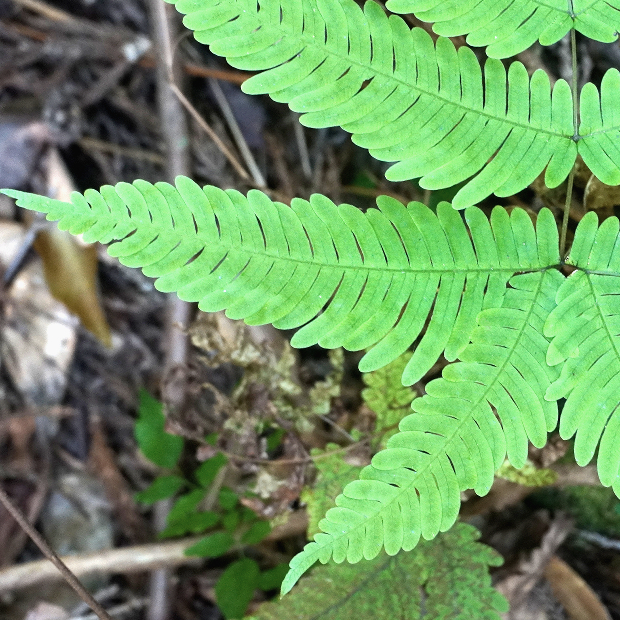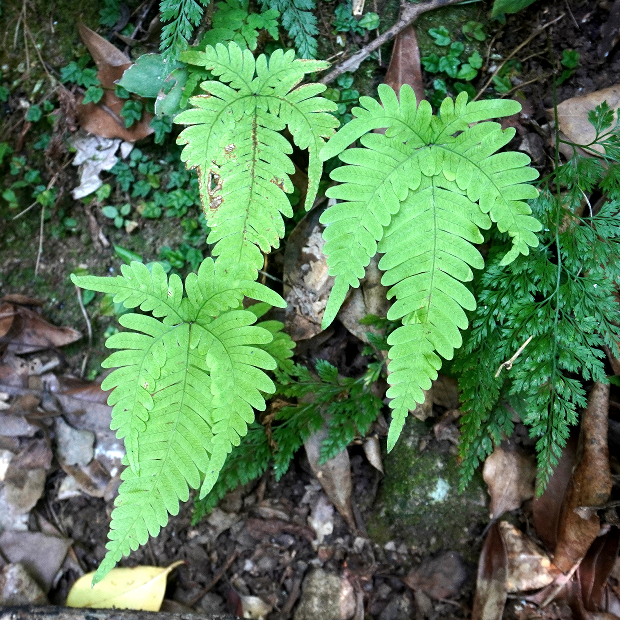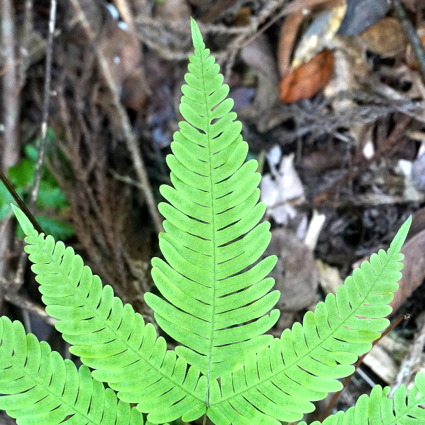 (右が見切れてしまっているが)、 葉軸に接する下向き小羽片2本が長く、 合わせて八の字に見える。