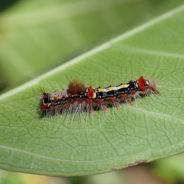 幼虫には毒針毛という毒のある毛があり、 その毛が皮膚に刺さると炎症を起こすことがあります。 毒針毛は繭、 成虫、 卵に付着して受けつがれます。 すべてに毒がありますので注意してください。