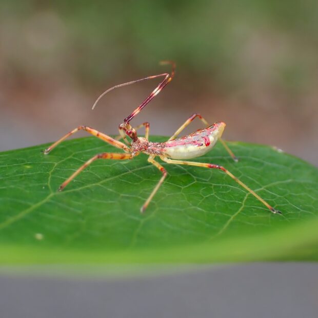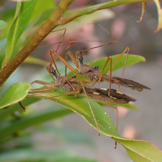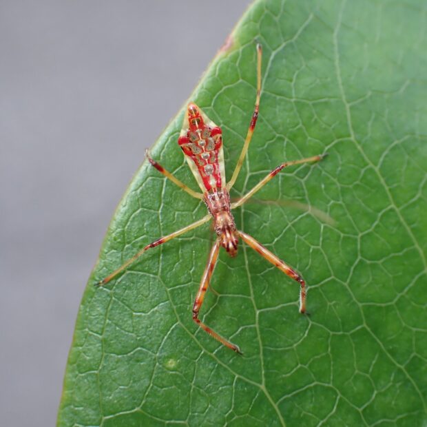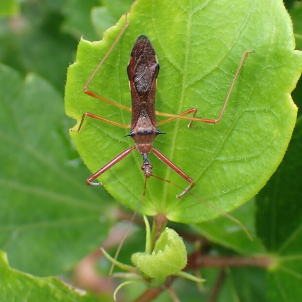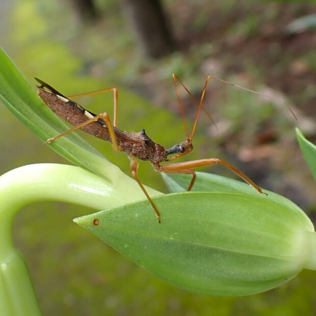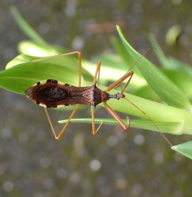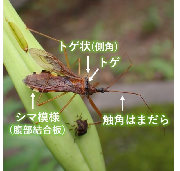 サシガメの仲間。 胸に4つのトゲ、 頭に2つのトゲがあることから、 「ムツトゲ」と名前がつけられました。 石垣島と西表島に生息していましたが、 沖縄島でも見られるようになりました。 日本で見られるムツトゲサシガメ属は本種のみです。