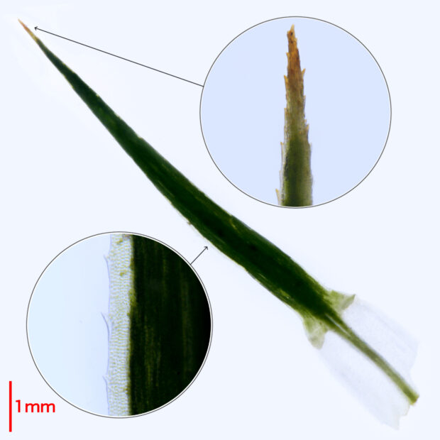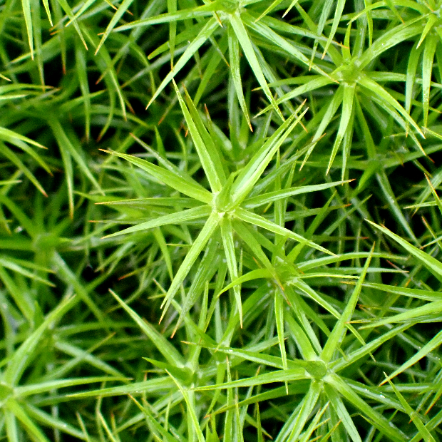 角ばっているのはスギゴケ属の特徴。 コスギゴケやセイタカスギゴケなどを含むニワスギゴケ属は丸みがある。