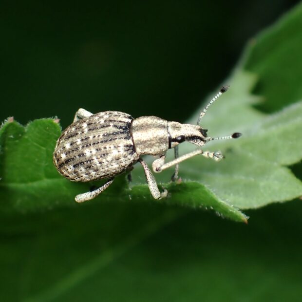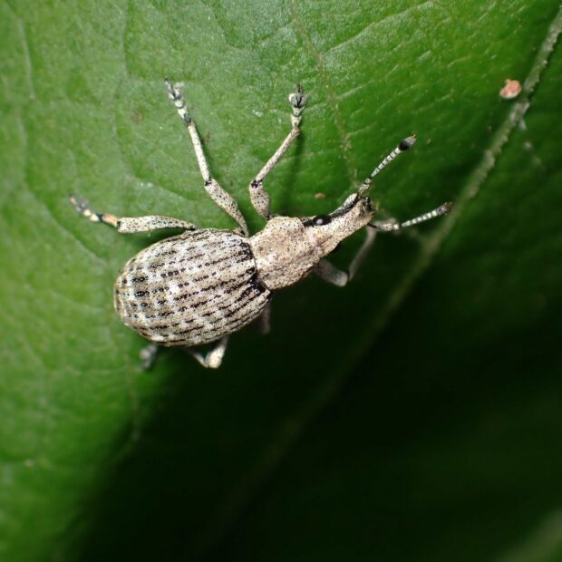 口吻があまり長くない灰色のゾウムシ。 メスのみで単為生殖を行うものと、 オスとメスが交尾をして両性生殖をするものが知られています。