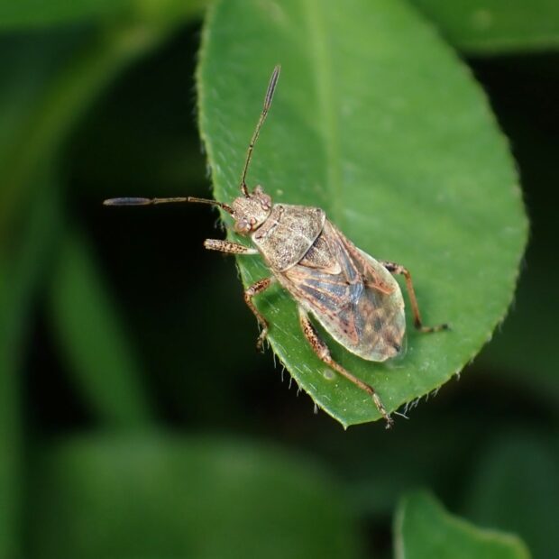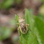 ヒメヘリカメムシ科の仲間。 ブチヒメヘリカメムシからの独立種。 ブチヒメヘリカメムシに似ていますが、 本種は頭部の毛がまばらで、 典型的なものは明るい色をしています。