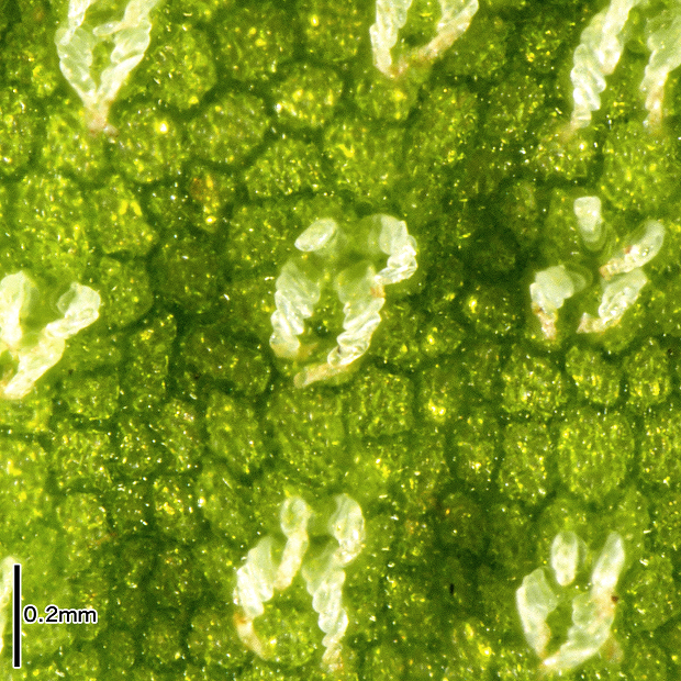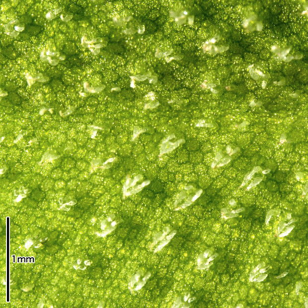 水上葉の表面をルーペや顕微鏡で見ると、 束になった毛がたくさんあることがわかります。 これで水をはじいて沈むのを防ぐことができます。