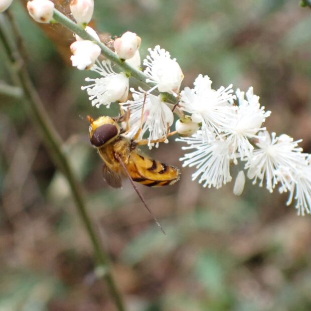 黒い帯が目立つ大きなヒラタアブ