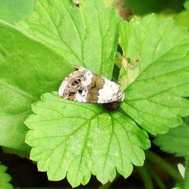 ヤガ科スジコヤガの仲間。 各地で普通に見られます。 「ネジロ」の名の通り、 前ばねの基部の白さが際立ちますが、 白色部分がピンクになるものもいます。 明かりにやって来ます。