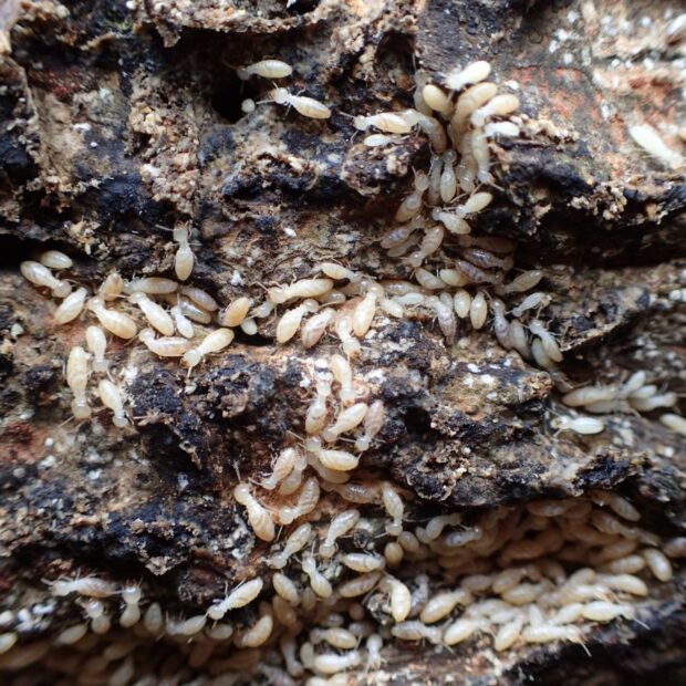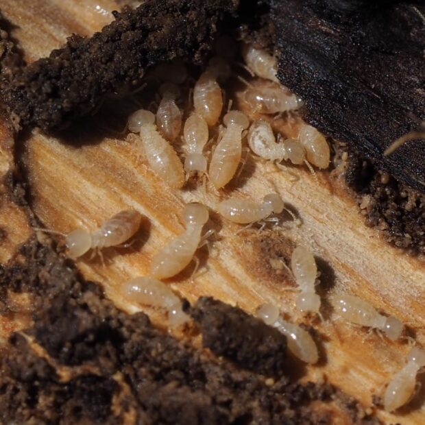 シロアリのほとんどは熱帯や亜熱帯に生息し、 日本は分布の北限になります。 人に被害をもたらすものはごく限られた種類でしかなく、 大部分は木材など枯れた植物を分解することで、 生態系の中で大きな役割を果たしています。 ヤマトシロアリは腸に数万の原生動物を住まわせ、 原生動物の力を借りて木を分解します。