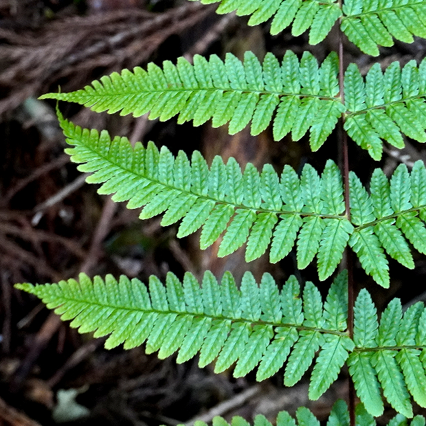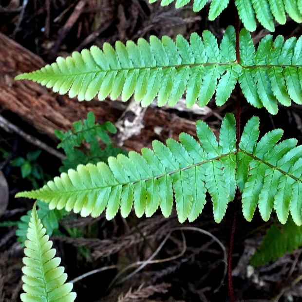 ベニシダによく似るが、 より葉軸に直角に近い角度で出る傾向があり、 小羽片は長くて切れ込みが深め。 この点はややヌカイタチシダモドキっぽさがある。