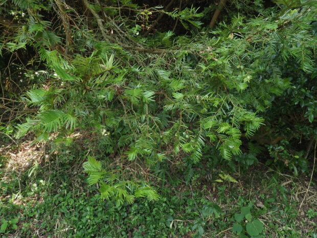 イヌガヤはカヤと似(に)ているんですが、カヤ材(ざい)は高級(こうきゅう)だし、実は(じつは)美味し(おいし)いしで、カヤよりイヌガヤは劣る(おとる)という意味(いみ)でイヌカヤになりました。木(き)の名前(なまえ)はあくまで人(ひと)がつけた名前(なまえ)なので、イヌガヤがカヤをリードする未来(みらい)もあると思い(おもい)ます。ちなみにイヌガヤの葉(は)にはあまり匂い(におい)はなく、イヌは好き(すき)でも嫌い(きらい)でもないと思い(おもい)ます。
