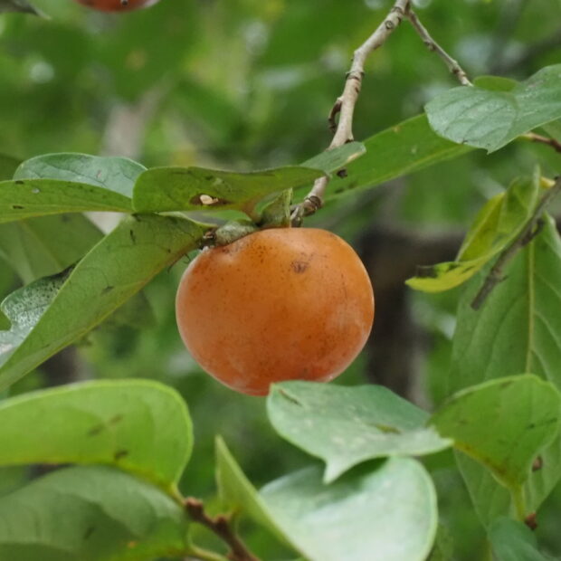 カキノキの実は(じつは)秋(あき)に赤く(あかく)なります。食料(しょくりょう)の乏しい(とぼしい)冬(ふゆ)にむけて人(ひと)も動物(どうぶつ)もこの実は(じつは)貴重(きちょう)でした。カキが実る(みのる)風景(ふうけい)もなかなか見(み)られなくなっているのかもしれません。