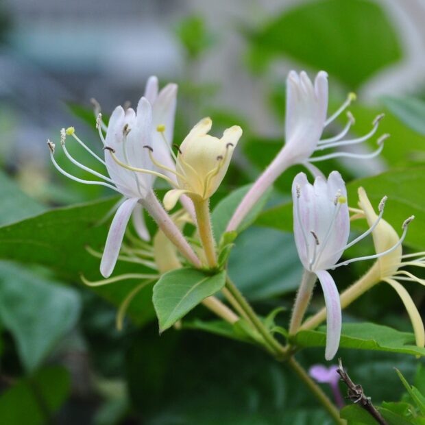 スイカズラの(はな)甘い(あまい)香り(かおり)はとても強い(つよい)ので、遠く(とおく)からでも咲い(さい)ているのが分かり(わかり)ます。