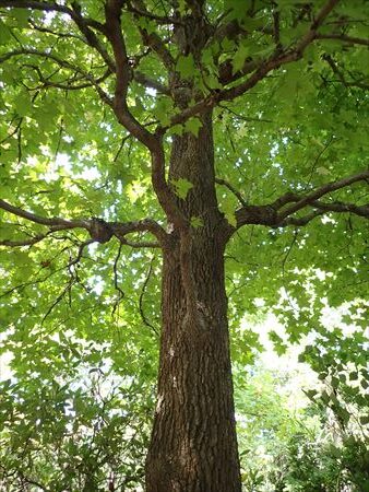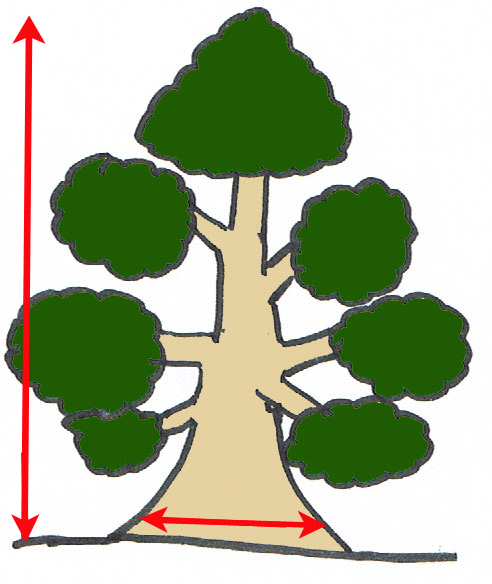 これは全部(ぜんぶ)が正解(せいかい)です。人(ひと)が切っ(きっ)ていない大木(たいぼく)なら、主(おも)に台風(たいふう)の影響(えいきょう)で高く(たかく)なれないと思わ(おもわ)れます。モミジバフウだけでなく、どんな木(き)も風(かぜ)が強い(つよい)場所(ばしょ)では、倒れる(たおれる)危険(きけん)があるので樹(き)高(だか)を高く(たかく)できません。根元(ねもと)をしっかり太ら(ふとら)せて樹(き)高(だか)を低く(ひくく)して安定(あんてい)させます。木(き)は環境(かんきょう)によって形(かたち)を変え(かえ)ていきます。
