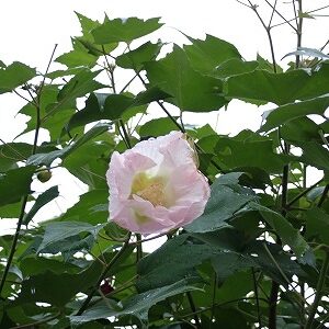スイフヨウは、朝(あさ)、咲き(さき)たては白い(しろい)花(はな)なのにだんだんピンクになっていき、夕方(ゆうがた)には濃い(こい)ピンクになります。それを夕方(ゆうがた)飲ん(のん)で赤く(あかく)なっている人(ひと)に例え(たとえ)て酔(よい)芙蓉(ふよう)と呼ば(よば)れています。実際(じっさい)、暑い(あつい)日(ひ)は早く(はやく)ピンクになり、雨(あめ)の日(ひ)などはなかなかピンクになりません。赤色(あかいろ)は紫外線(しがいせん)から守る(まもる)サングラスの色(いろ)なので、これから実る(みのる)種(たね)を守っ(まもっ)ているのではないかと予想(よそう)しています。
