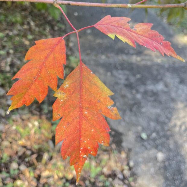 「ミツデ」は葉っぱ(はっぱ)が3枚(まい)に分かれ(わかれ)ていることからつきました。こう見え(みえ)てカエデの仲間(なかま)なのです。