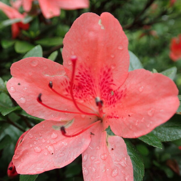 答え(こたえ)はサツキです。サツキは岩場(いわば)()伸ばし(のばし)、しなやかな(えだ)細く(ほそく)小さな(ちいさな)()で、(みず)(ちから)受け流す(うけながす)ように暮らし(くらし)ています。イチョウもヒノキもこのような場所(ばしょ)には生き(いき)られません。