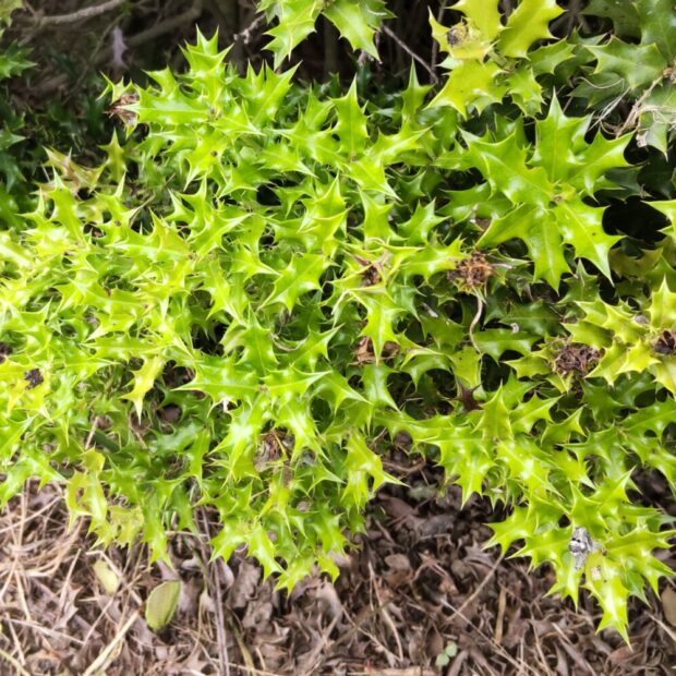 普通(ふつう)のヒイラギモチより葉(は)が小さい(ちいさい)