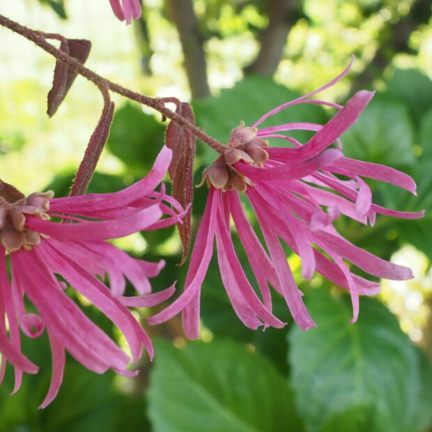 トキワマンサクの花びら(はなびら)は、細長い(ほそながい)リボンのような形(かたち)をしています。