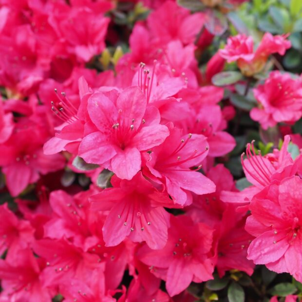 江戸(えど)時代(じだい)後期(こうき)から久留米(くるめ)で数(すう)百(ひゃく)の園芸(えんげい)品(ひん)として開発(かいはつ)され、それらを総称(そうしょう)してクルメツツジと言わ(いわ)れるようになりました。