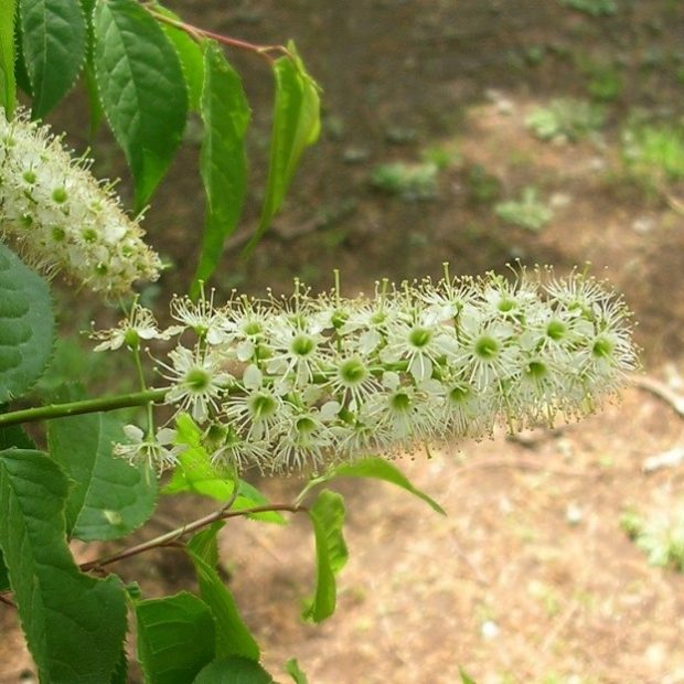 ウワミズザクラには、ブラシのような(はな)咲き(さき)ます。