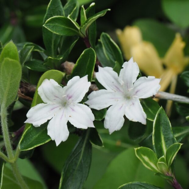 6月頃(つきごろ)に咲く(さく)白い(しろい)花(はな)がチョウジの花(はな)に似(に)ていることからハクチョウジと名づけ(なづけ)られました