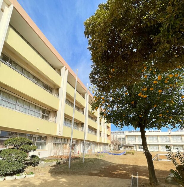 玄関(げんかん)前(まえ)には大きな(おおきな)ナツミカンの実(み)が毎年(まいとし)なります。春(はる)から秋(あき)にはアゲハチョウの幼虫(ようちゅう)や成虫(せいちゅう)も見る(みる)ことができます。