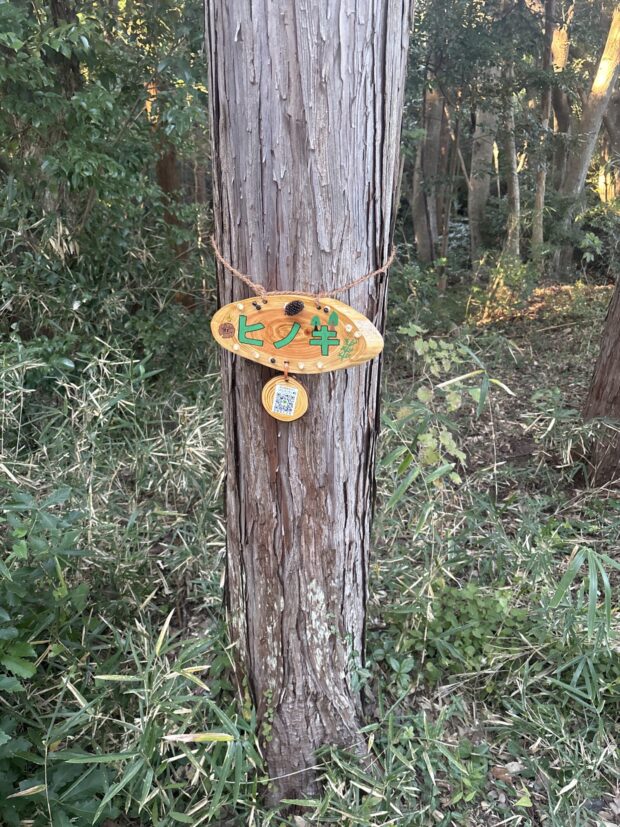 安馬谷(あんばや)里山(さとやま)には、2024年(ねん)11月(つき)20日(にち)嶺(みね)南中(なんちゅう)学校(がっこう)3年生(ねんせい)制作(せいさく)の樹(き)名(めい)板(いた)72枚(まい)が取り付け(とりつけ)られました。