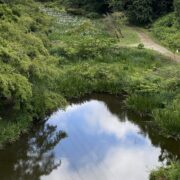 橋の上からの眺めは良く、 水辺を通ってきた風は気持ち良いです。 ここで時間の流れを忘れゆったりと立っているだけでデトックスできます。 春はウグイス、 夏はキビタキ、 冬は様々な鳥の声を聞くことができます。