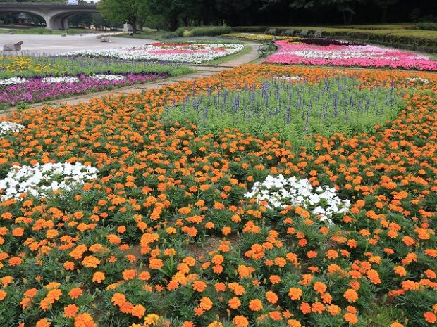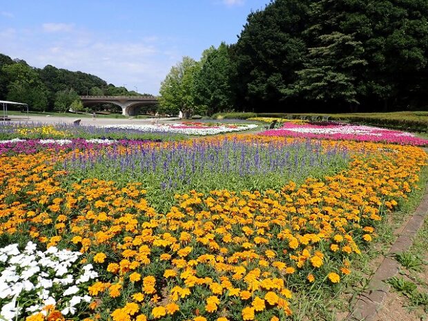 この公園のシンボルともいえる花壇です。 季節ごとに花々で彩られ、 ベンチからは花壇越しに千駄堀池の風景を眺めることができる憩いの場です。 花にはたくさんのチョウやハチが訪れ、 絶好の観察スポットにもなっています。