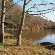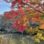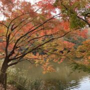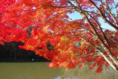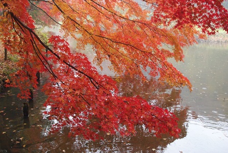 秋は水面に映るイロハモミジが美しいです。