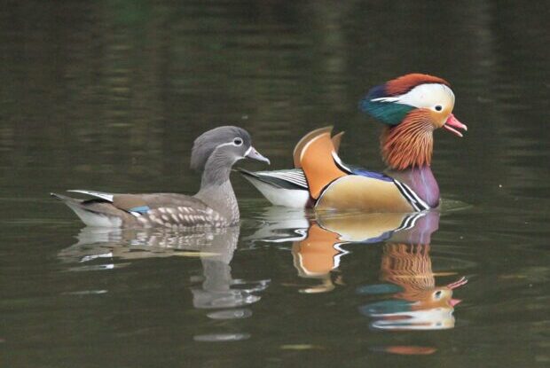 オシドリのカップルが見られることもあります。 仲良しオシドリ夫婦をみてほっこり癒されましょう。 ぜひ双眼鏡持参でお越しください。