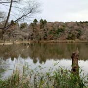 冬(2−3月)は池の対岸、 垂れ下がった木の枝の間から、 鮮やかな姿のオシドリの雄がちらちらと見られる時もあります。