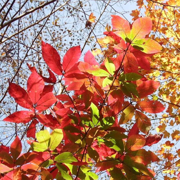 イロハモミジ以外にメグスリノキやエンコウカエデ、 オオモミジ、 イヌシデなど様々な木の紅葉・黄葉が楽しめます。