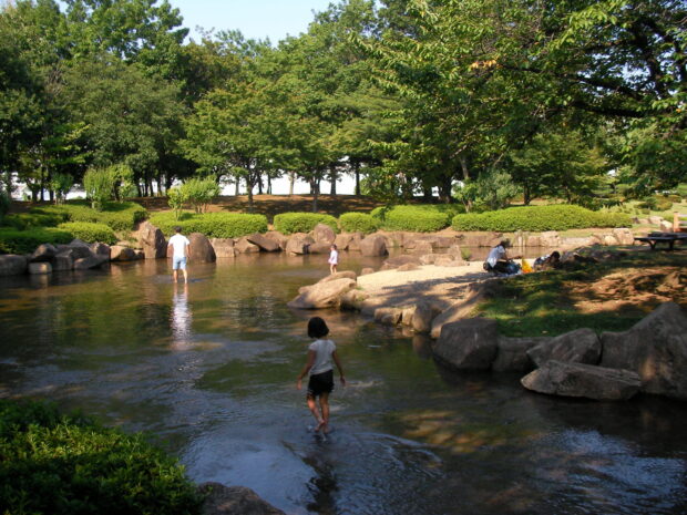 B地区のじゃぶじゃぶ池は全長約200mあります。 例年、 7月下旬~8月下旬の夏休みにあわせて稼働しています。