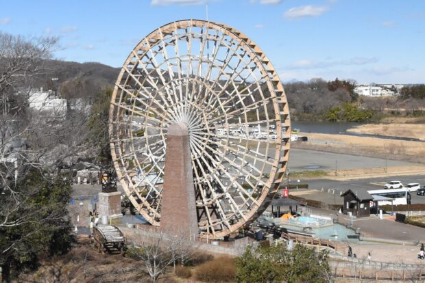 回転する水輪部分は2019年に改修され、 直径が24.2mで日本一の大きさです。